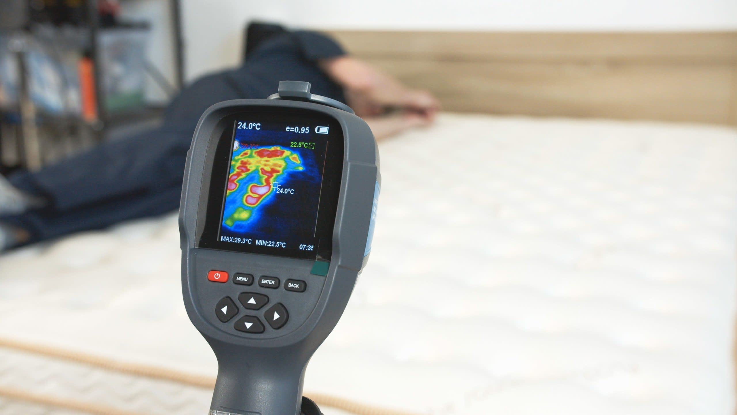 Our testers lie on the surface of each mattress to evaluate factors such as contouring and support. We also use specialized tools to measure performance criteria like pressure relief, heat retention, and motion isolation.