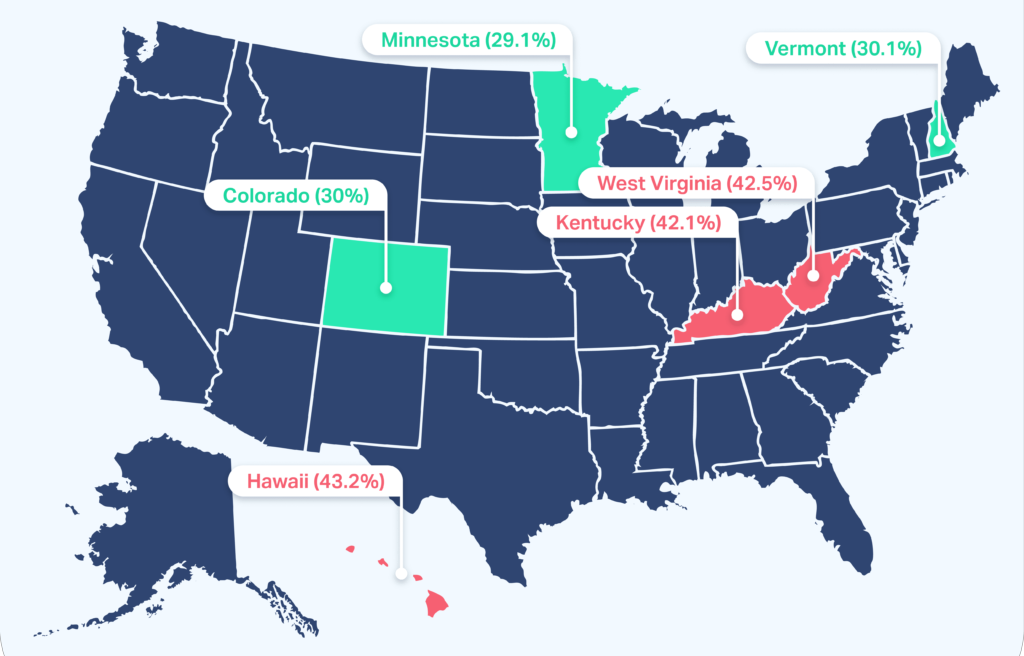 - Among all states, Hawaii has the highest percentage of adults (43%) who get seven or fewer hours of sleep each night. | Learn more